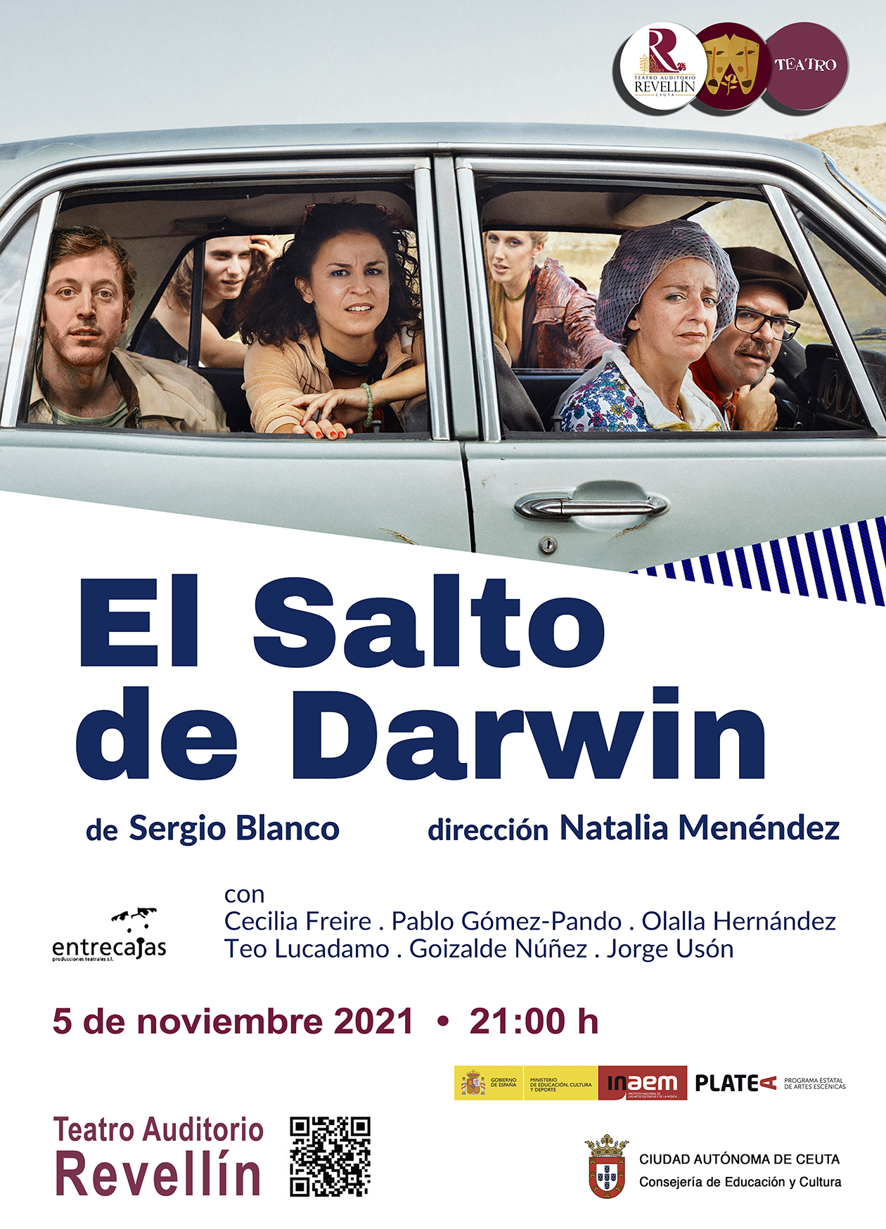 La Consejería de Educación y Cultura ha puesto a la venta un abono para los interesados en asistir a las representaciones de ‘El salto de Darwin’ y ‘La Casa de Bernarda Alba’, que tendrán lugar en el Teatro Auditorio del Revellín los días 5 y 27 de noviembre a las 21.00 y 19.30 horas respectivamente.
