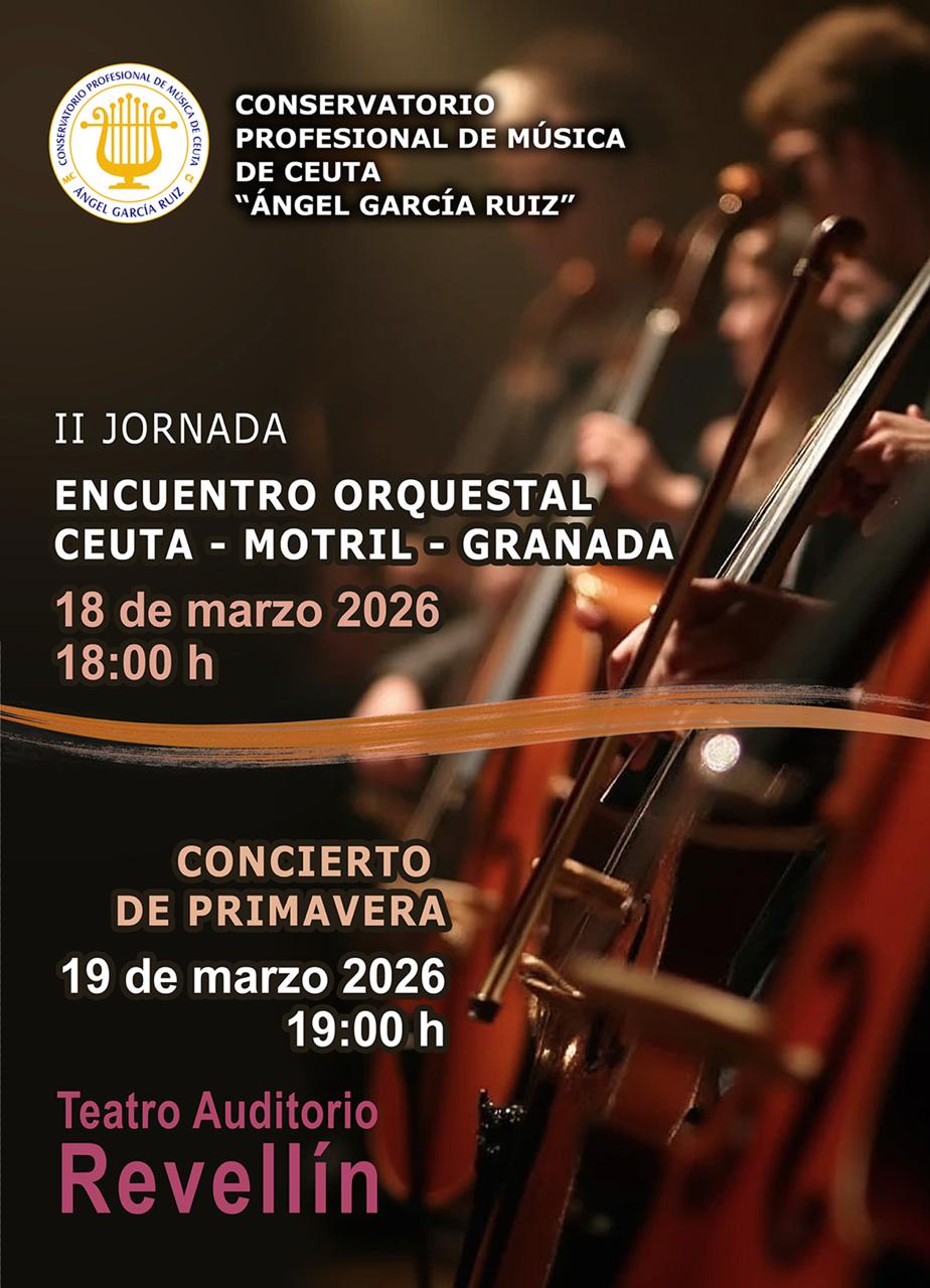 Por un lado, tendrá lugar la II Jornada del Encuentro Orquestal Ceuta–Motril–Granada, una iniciativa que este año celebra su segunda edición y que cuenta con la colaboración de los conservatorios de Granada y Motril. Este encuentro consiste en una reunión musical que congrega a todo el alumnado de orquesta de los tres centros. En esta ocasión, los estudiantes se darán cita en Granada los días 16 y 17 de este mes para trabajar conjuntamente y ofrecer un concierto en la capital granadina con un repertorio muy diverso, que abarca obras de distintos compositores y épocas. En este experiencia participarán alrededor de cien alumnos de los tres centros, de los que aproximadamente 30 proceden del conservatorio ceutí.