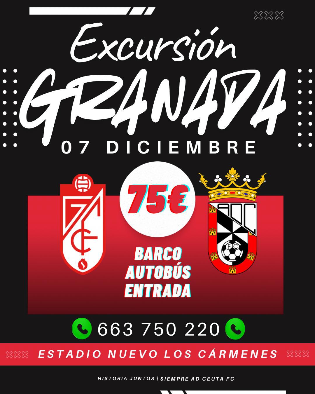 La afición de la AD Ceuta FC ha empezado a movilizarse para el siguiente compromiso del equipo caballa en LaLiga Hypermotion, el domingo 7 de diciembre (21:00 horas) en el estadio Los Cármenes de Granada. La cercanía del desplazamiento y el buen momento del equipo caballa, tras sus dos victorias de esta semana contra Almería y Burgos, van a propiciar un masivo desplazamiento de aficionados ceutíes a la ciudad de la Alhambra.