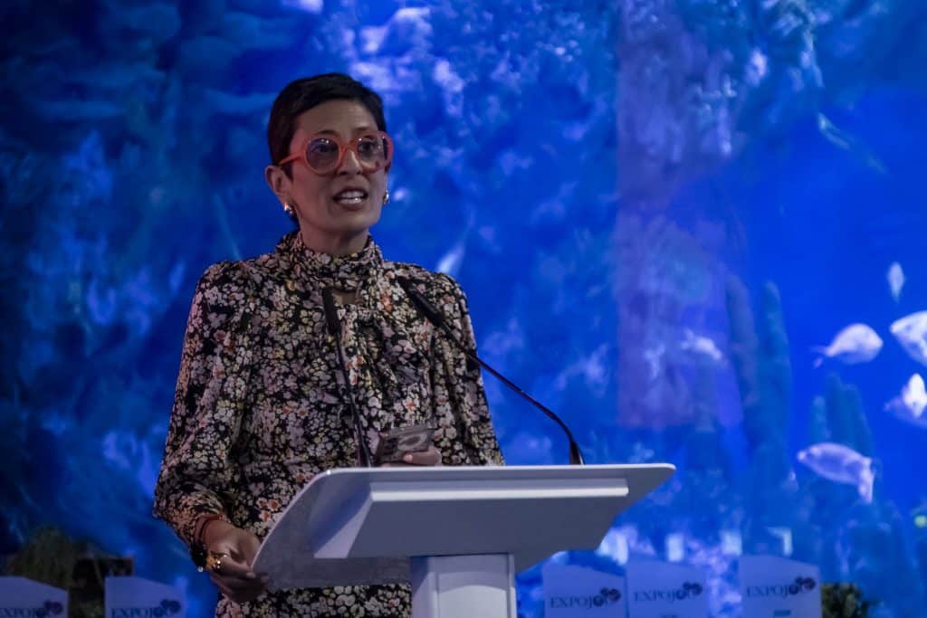La vicepresidenta ceutí ha sido además la encargada de entregar al presidente de Luckia, José González Fuentes, el Premio a la Trayectoria Profesional, emitido por el jurado de EXPOJOC 2026. en el acto celebrado este martes por la noche en el Auditorio Santiago Grisolía del Museo de las Ciencias Príncipe Felipe de Valencia