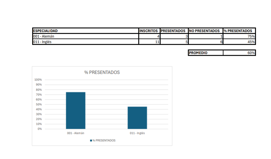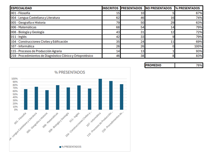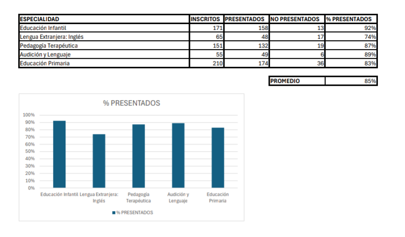 Las oposiciones celebradas este sábado llamaban a examinar a más de 1.100 estudiantes. La mayoría de las especialidades han superado el 85% de presentados, como en Educación Infantil con un 92%, Audición y Lenguaje con un 89% o informática con un 100% de cupo. En los idiomas, sin embargo, ha habido menos presentados de los esperados, como en inglés, con un 45%. El mayor número de presentados ha sido en Educación Primaria, con 147 personas, lo que supone un 83%.
