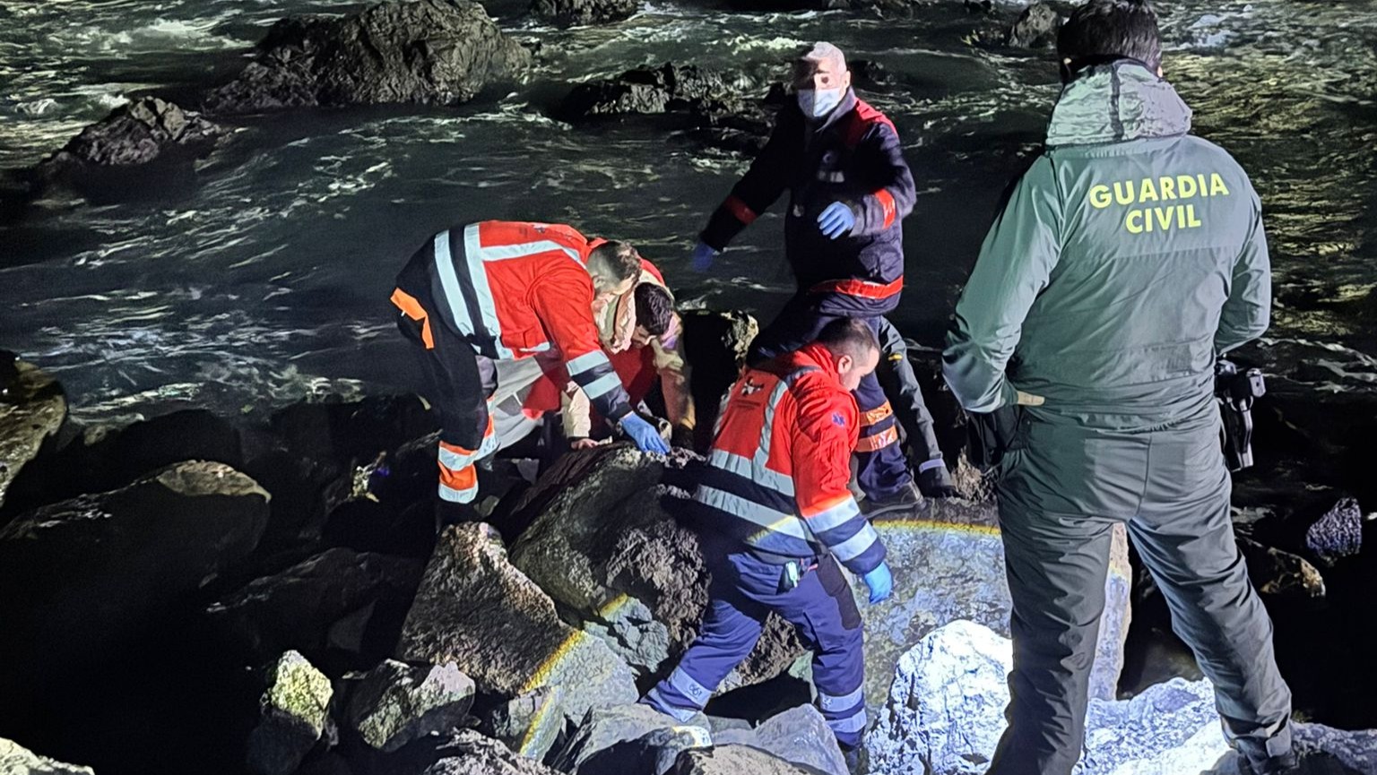 AUGC ha querido ensalzar la coordinación que se produjo con el 061 en este rescate que tuvo lugar en la madrugada del martes. Desde la asociación han explicado que se movilizó una unidad de Soporte Vital Básico cuyos técnicos sanitarios pudieron comprobar que el migrante "presentaba lesiones de extrema gravedad, entre ellas fractura cerrada de mandíbula y de fémur, múltiples contusiones y una herida inciso.-contusa occipital sangrante".