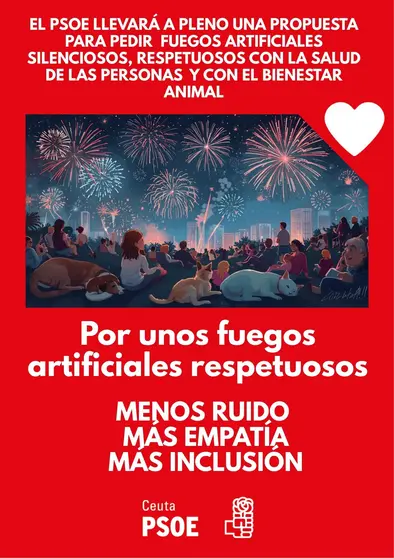 Los socialistas buscan una transición a un modelo festivo más incluso, moderno y responsable, que garantice la participación en condiciones de igualdad de las personas y la protección de los animales. Relatan que los fuegos artificiales tienen un impacto negativo en las personas con hipersensibilidad sensorial, en especial aquellas con transtorno del espectro autista, TDHA o ansiedad. También, a personas mayores y bebés entre otros, según afirma Sandra López, Secretaria de política Institucional y Adjunta de Organiación del partido.