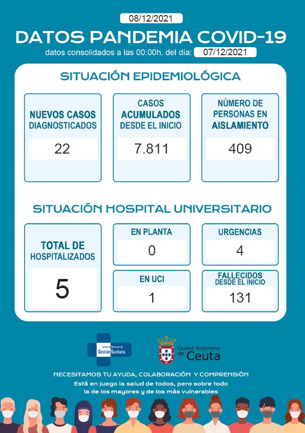 Con todo, el número de personas en aislamiento se sitúa actualmente en la ciudad ha aumentado hasta las 409 personas, aumentando a cinco las personas hospitalizadas, estando una en UCI y cuatro en urgencias. El número de fallecidos en la ciudad continúa en 131 desde el inicio de la pandemia.