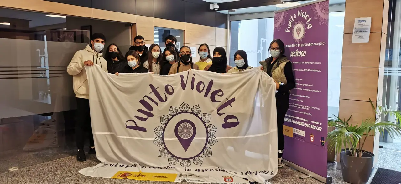Además, desde el pasado 17 de noviembre, la Consejería de Servicios Sociales ha trasladado los puntos violetas a los centros en los que se imparten Secundaria, habiéndose iniciado este recorrido en los IES Puertas del Campo y Almina, donde se han cosechado una buena acogida por parte del alumnado de ambos institutos.
