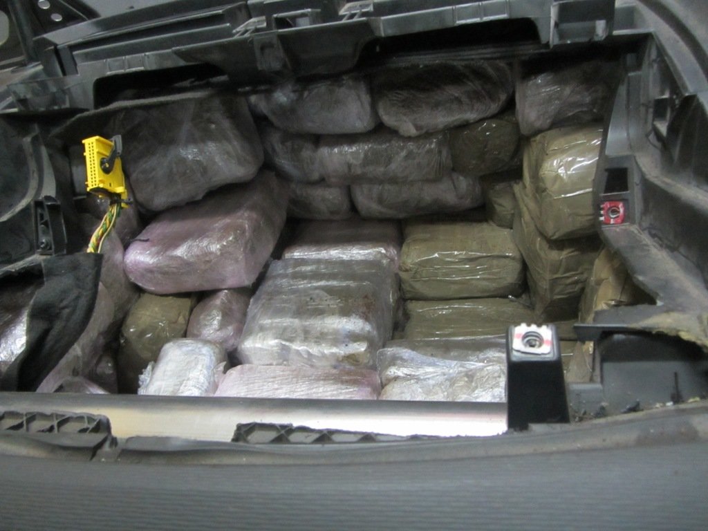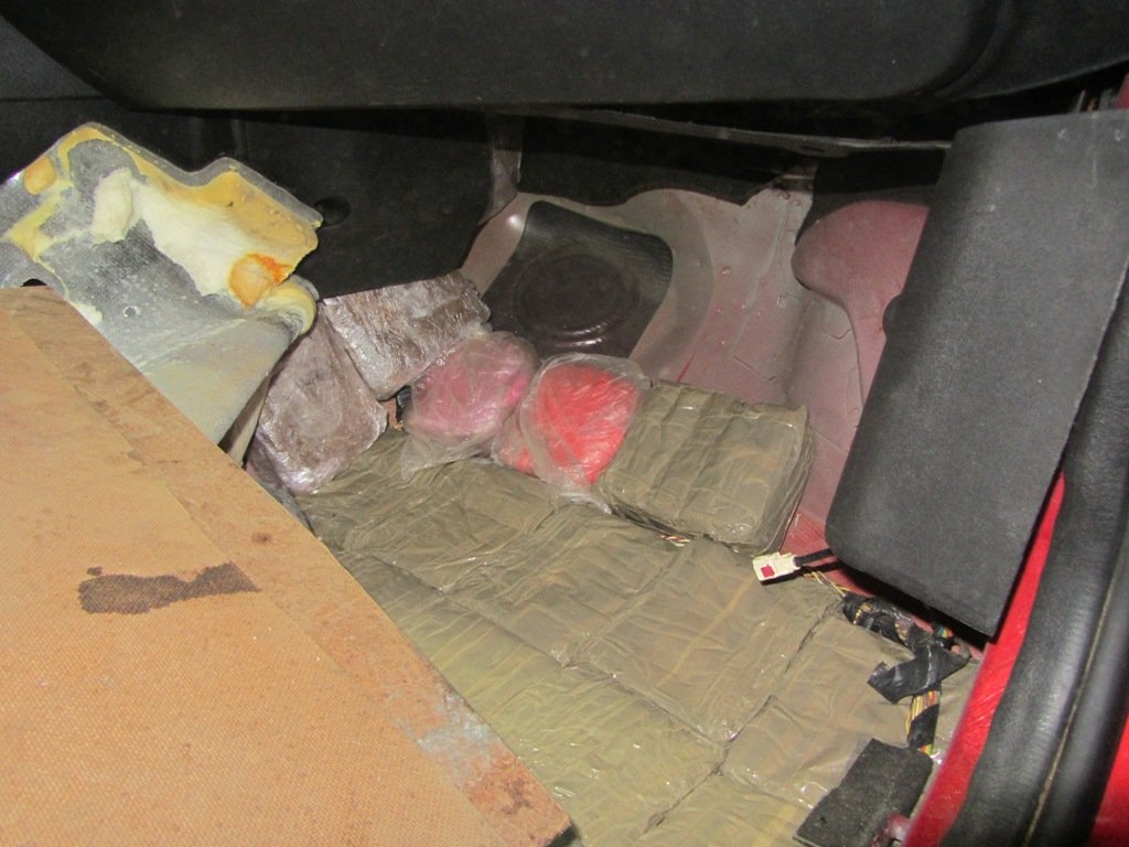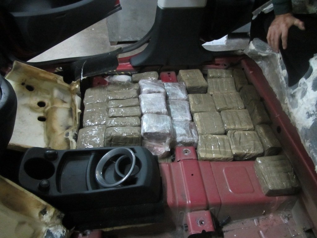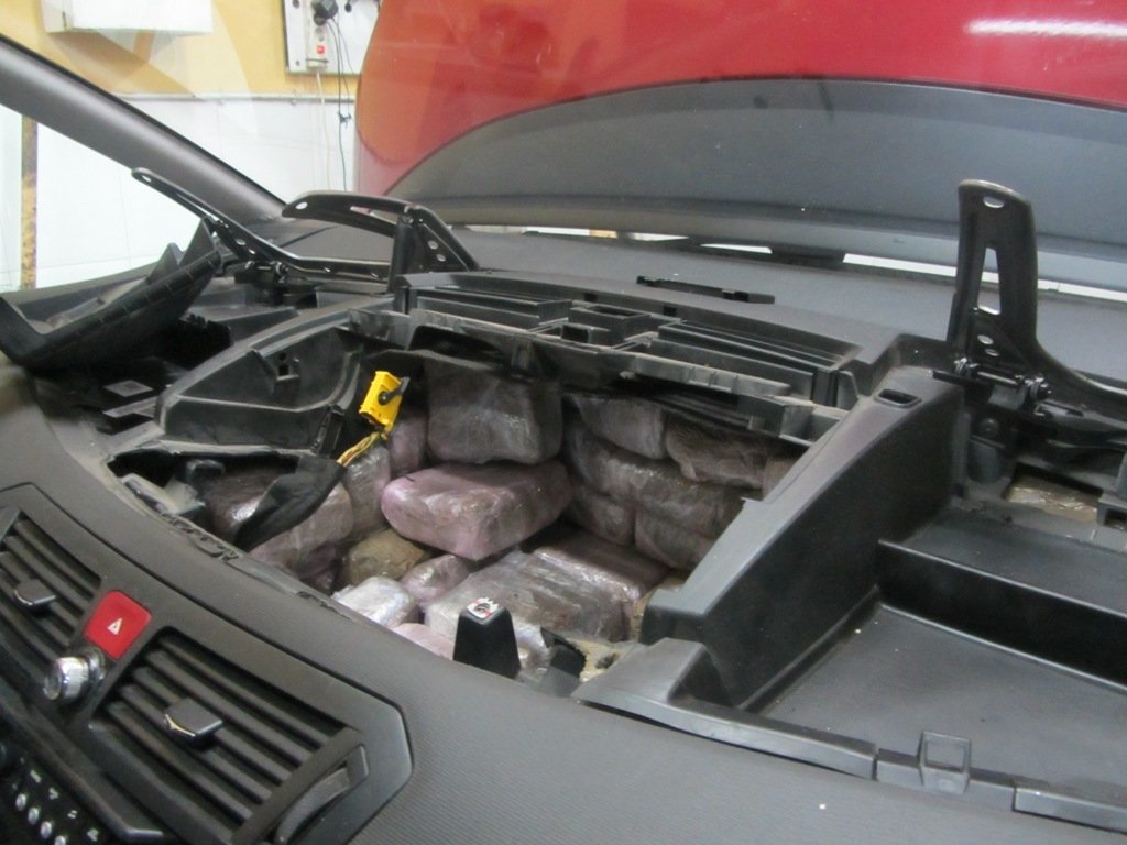 Ha sido esta madrugada en el interior de un Citroen C 4, concretamente en unos dobles fondos. Solicitada la documentación al conductor, se le indicó que se trasladara a las dependencias de la Guardia Civil. Sin embargo, durante su traslado y tras forcejear con el agente que lo acompañaba se dio a la fuga, logrando montarse en otro vehículo, que le estaba esperando sin que hasta la fecha hayan podido ser detenidos.